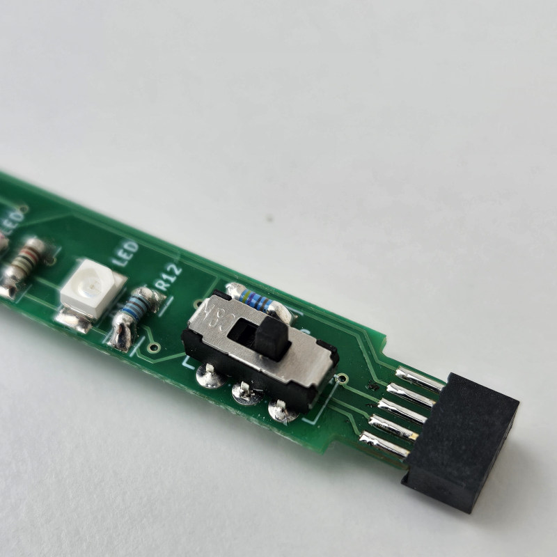 L'interrupteur à deux positions permet de passer d'un mode à l'autre. La LED bleue au-dessus de l'interrupteur permet de confirmer l'enregistrement des données dans le décodeur.
